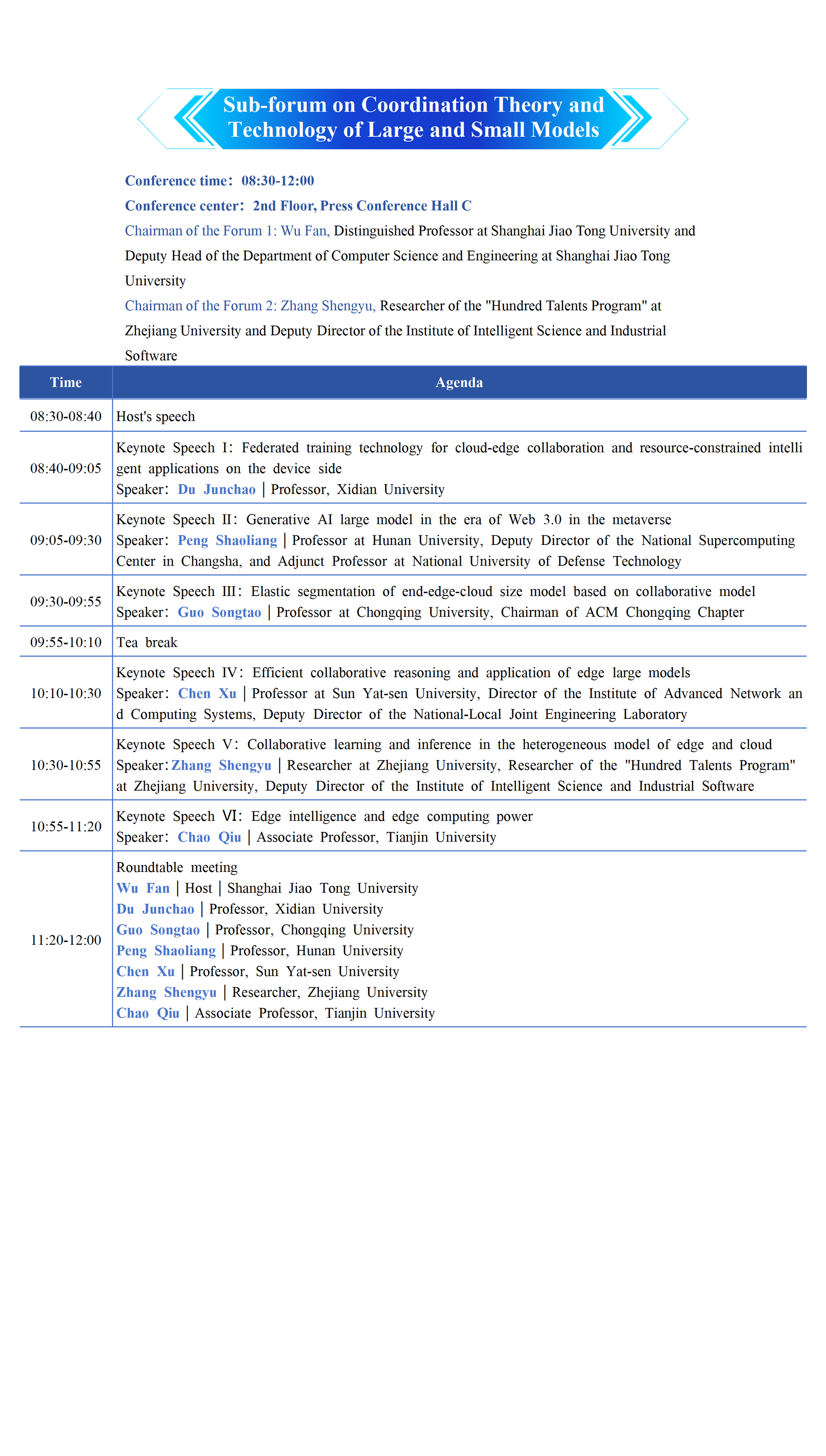 Sub-forum on Coordination Theory and Technology of Large and Small Models